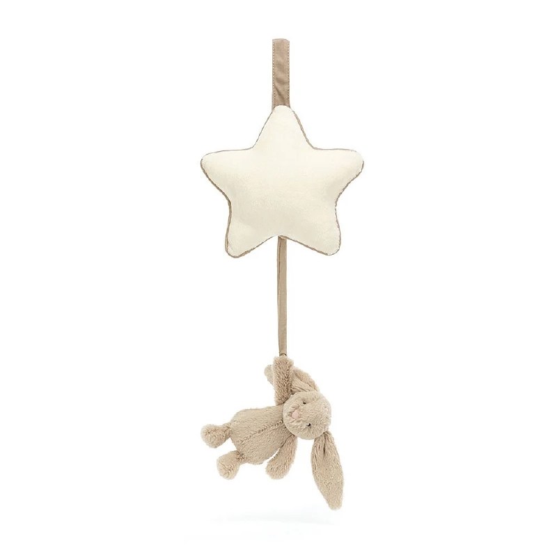 An enchanting newborn gift, let babies dream sweetly with a Bashful Beige Bunny Musical Pull. This beloved Bashful Bunny, in soft, mushroom coloured fur made from recycled fibres can be gently pulled to hear an original Jellycat lullaby. The cream star shaped musical pull with contrast trim can be attached to a crib or pram with a Velcro fastening.