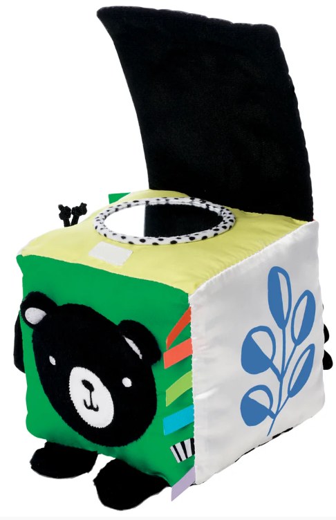 •Babies will love to explore every inch of this remarkable soft cube that features a baby-safe mirror under a soft fabric flap, textured fabrics, colored ribbons, and a squishy-soft design.