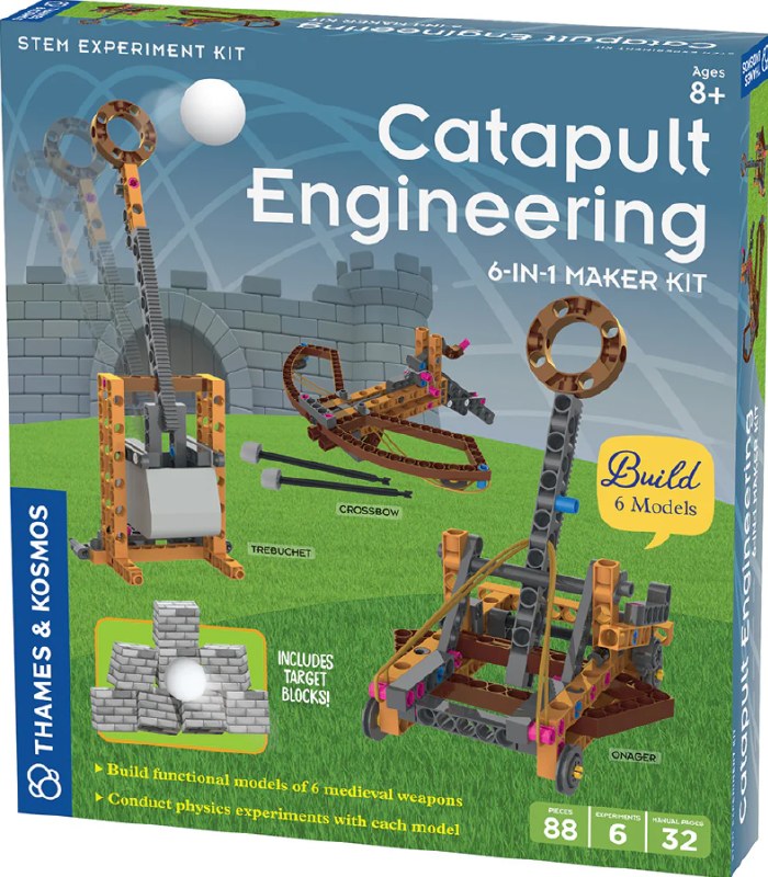 •Investigate physics using technology from medieval times! Build six sleek, updated models of catapults, trebuchets, and other medieval launchers.