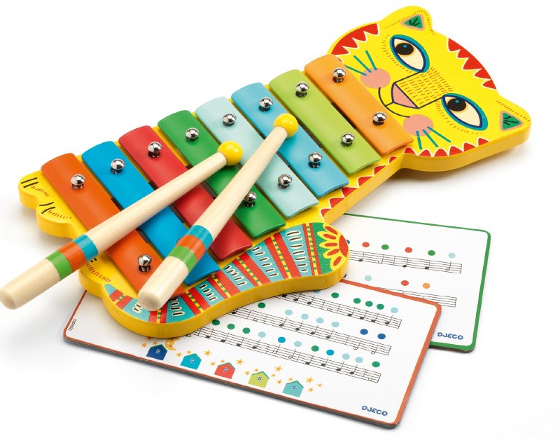 • A beautiful children's xylophone, featuring eye-catching and engaging cat-inspired artwork designed by famous French artist Magali Attiogbe. On a wood base, this 8 note xylophone creates beautiful, high-quality notes when struck by the 2 wooden mallets; includes music cards for 4 songs
