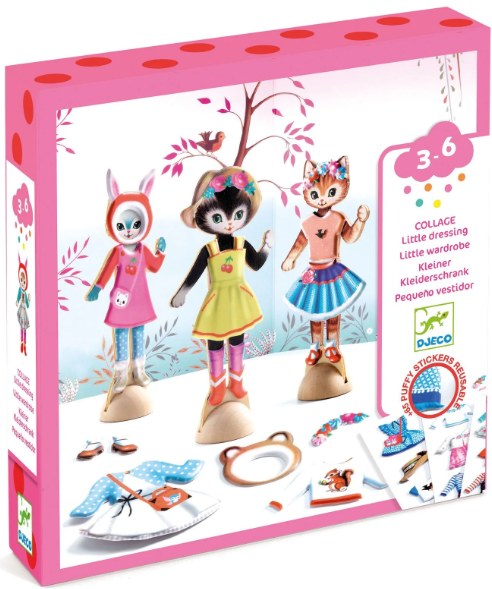 • A collage activity: dress up the 3 adorable wooden cats with more than 45 items of clothing that can be stuck and restock however you like! All that’s left to do is make up some lovely stories to go with the three scenes.