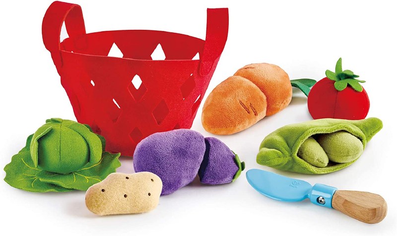 •MADE FOR LITTLE HANDS: The vegetables and wooden handle are easy for toddlers to grab and hold. Pop the peas from their pod, peel the cabbage leaves and cut the carrot and eggplant in half